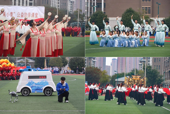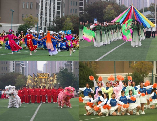 开幕式文体演出精彩纷呈。财务与会计学院《万疆合韵》运用多元舞蹈元素,展现民族团结主题,华服绚烂、舞姿翩跹,在传统与现代的交融中绘就了一幅生动绚丽的民族文化画卷;经济与金融学院《美丽中国》以刚柔并济的舞姿绘就山河画卷,表达对“美丽中国”的深情礼赞;管理学院《龙狮献瑞 棍舞五育》将传统艺术与现代教育理念完美结合,彰显了管院落实“五育并举”培养全面发展人才的育人成果;国际商务学院《盛世华章展宏图》以灵动舞姿传递文化自信,以创新形式抒发奋进豪情,展现了新时代学子开阔的视野;人文与艺术学院《禹风》巧妙融合大禹治水精神与地方花鼓灯艺术,演绎出“禹魂铸骨承千古,鼓韵裁衣耀今朝”的豪迈激情;计算机与人工智能学院《九州山歌 弥渡同春》将独特创意融合科技逻辑与民族风情,将数据流转与算法韵律化为优美舞步,演绎出传统山歌的悠扬意境与九州春日的蓬勃生机;数据科学与应用学院《踏山河》把算法的严谨与舞步的韵律相融合,刚柔并济,表达数据学子既具潜心钻研的定力,亦有勇攀高峰的青春激情。