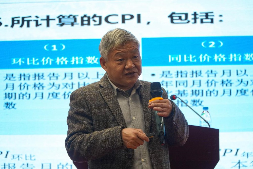 讲座开场,谢忠秋教授从“道法自然”“道法人性”“道法一体”的东方哲学视角出发,引导大家思考宏观规律与微观现实之间的关系。随即他以“买菜”这一生活场景为例,引出主题:“为何国家CPI数据显示微降,居民却常感觉物价上涨?”谢教授围绕宏观数据与个体感受之间的差异,即“温差”是什么、为什么、怎么办,展开系统阐述。